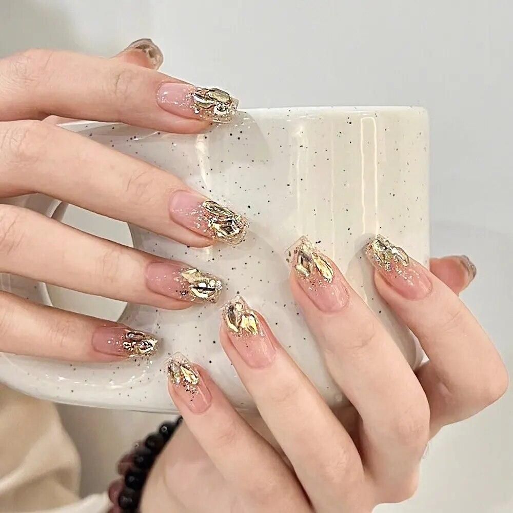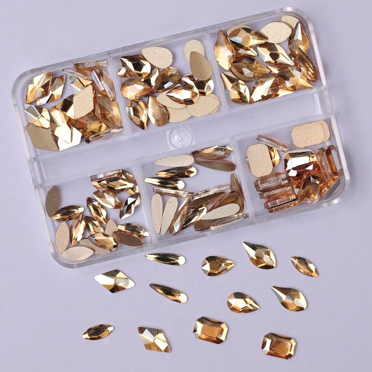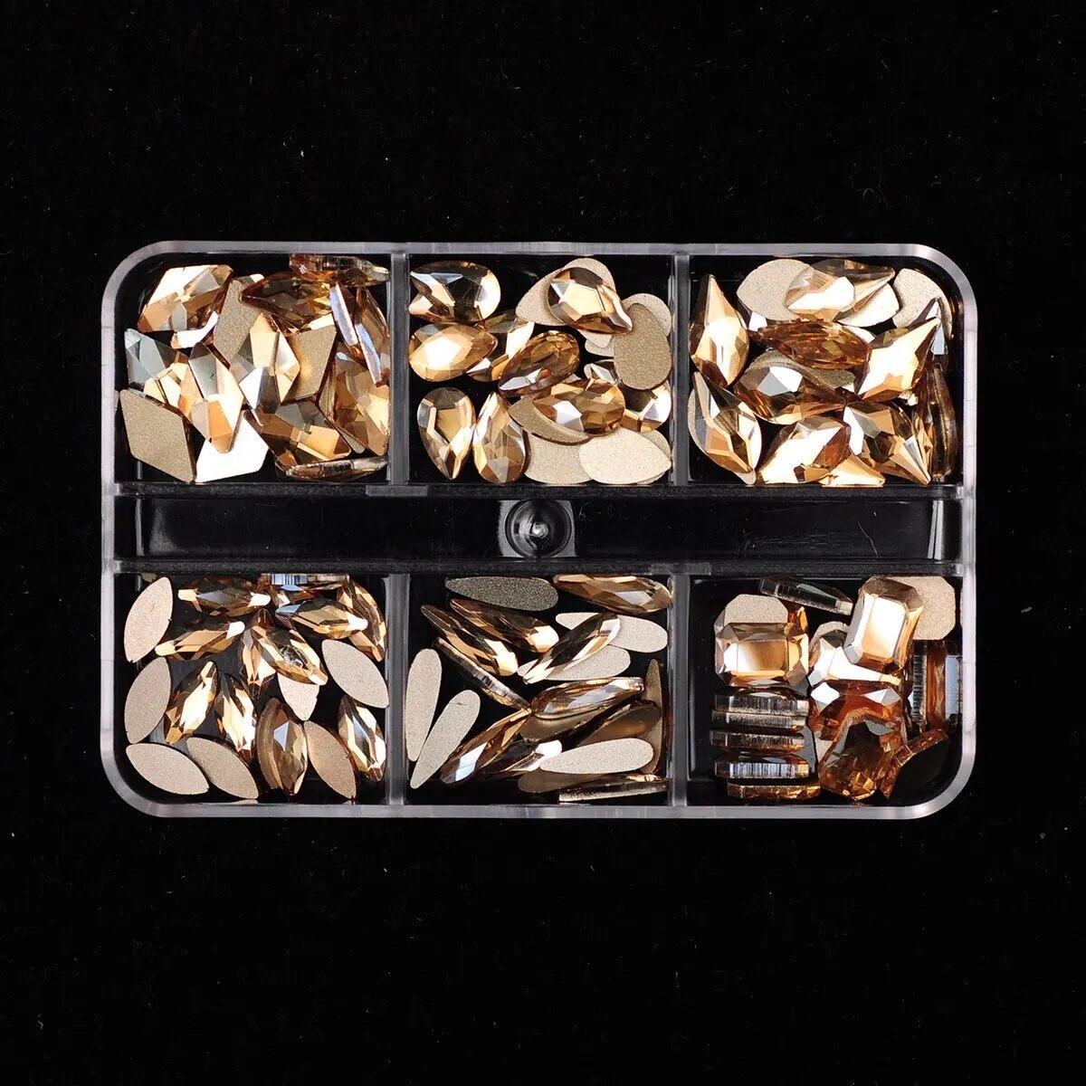 Buy 6 Grids 120pcs Mixed Shapes Golden Shadow Nail Rhinestones Nail Charms Accessories Flat Back 3D DIY Nails Art Decoration in Nigeria