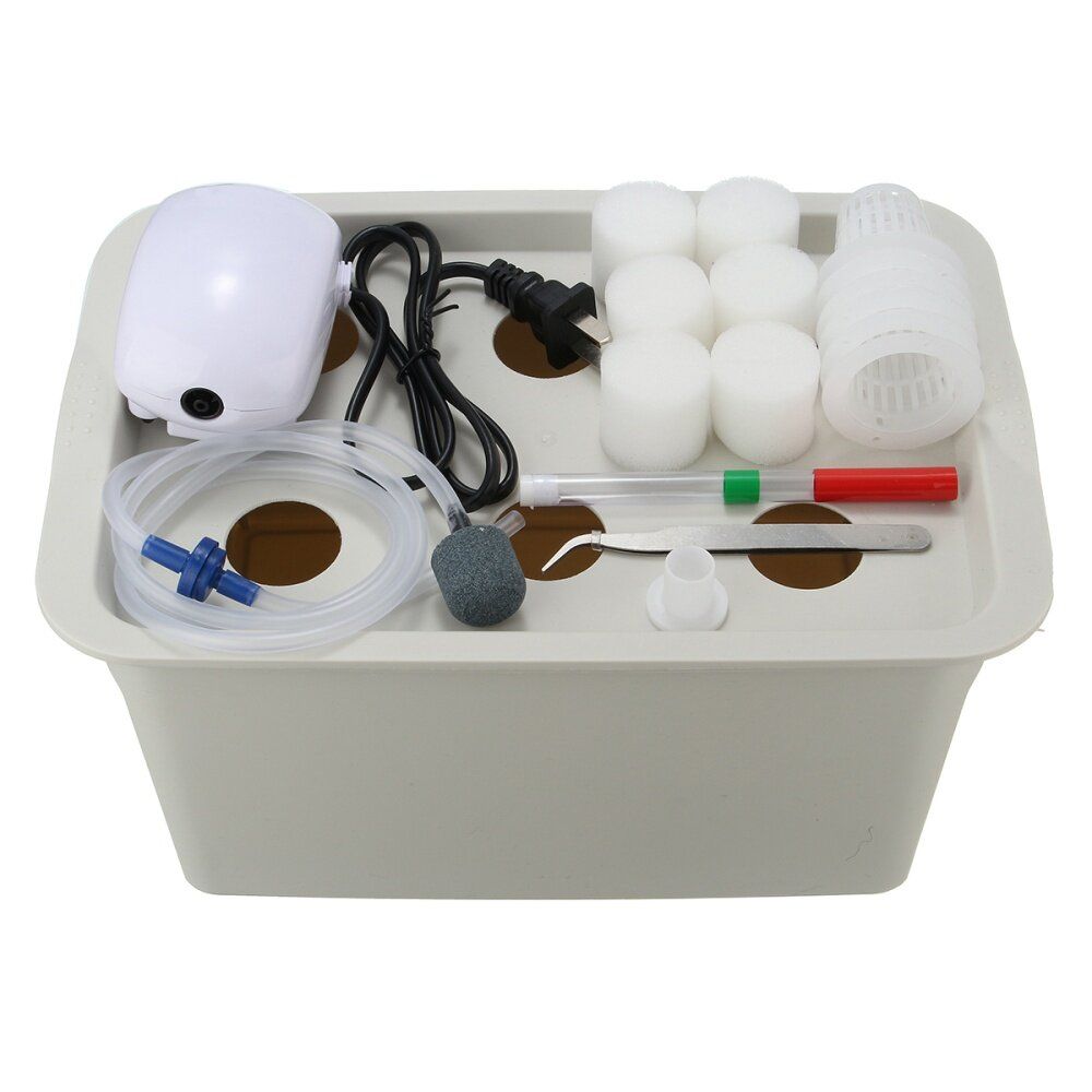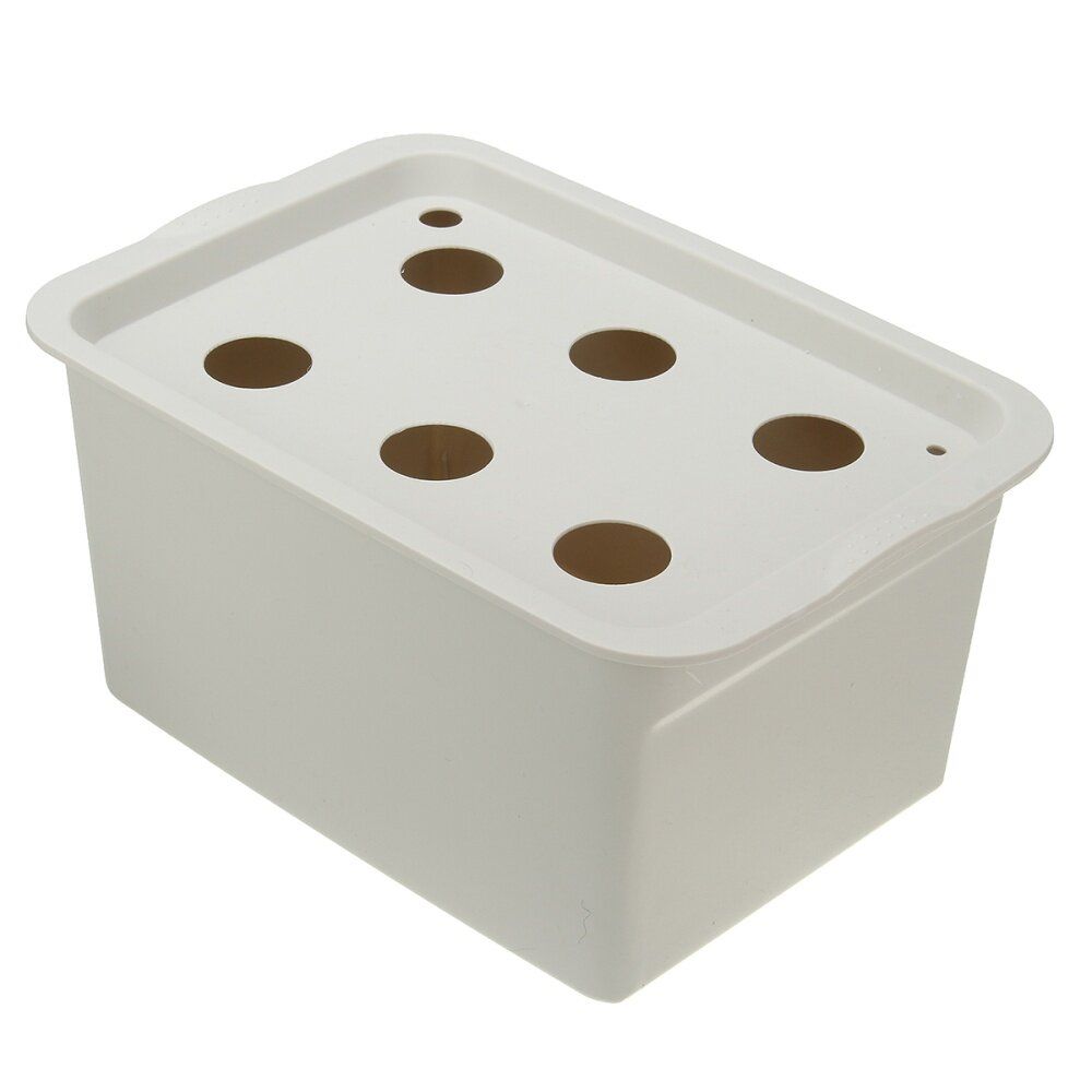 1 x Hydroponic Box With 6-Site Lid 6 x Net Cups 6 x Rockwool Cubes 1 x Air Pump 1 x 100cm Tube Kit 1 x Tweezers 1 x Buoy