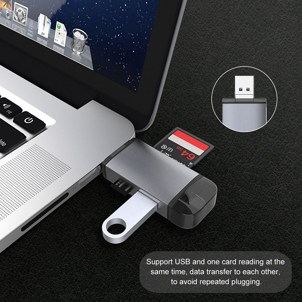 The S-D/TF dual card slot function allows you to directly use the phone and camera memory card. The USB 3.0 interface design easily connects USB external devices such as USB flash drives, mouse, keyboards, gamepads, printers. The product shell is made of aluminum-magnesium alloy, durable and fashionable. Lanyard design, anti-lost, small and exquisite, easy to carry. Six-in-one multi-function card reader lets you enjoy digital life freely.
