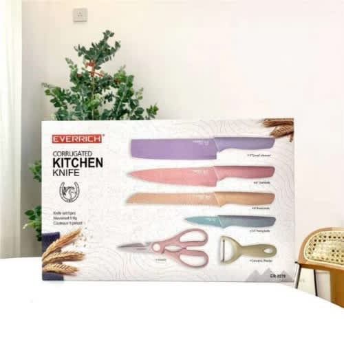 Buy 6 In 1 Corrugated Everrich Colorful Stainless Steel Knife Set Kit in Nigeria