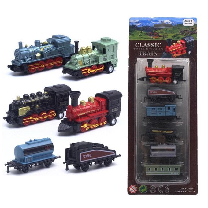Comes with 1 locomotive and 5 carriages, which can be connected.
