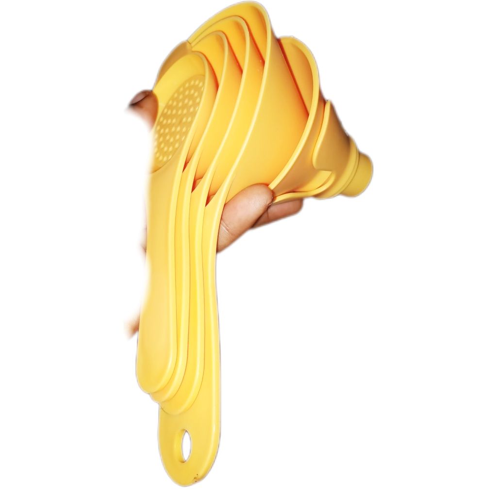 Material : PP PlasticColor : Beige, Pink, Green, Blue, OrangePacking : 6Set Funnels Set