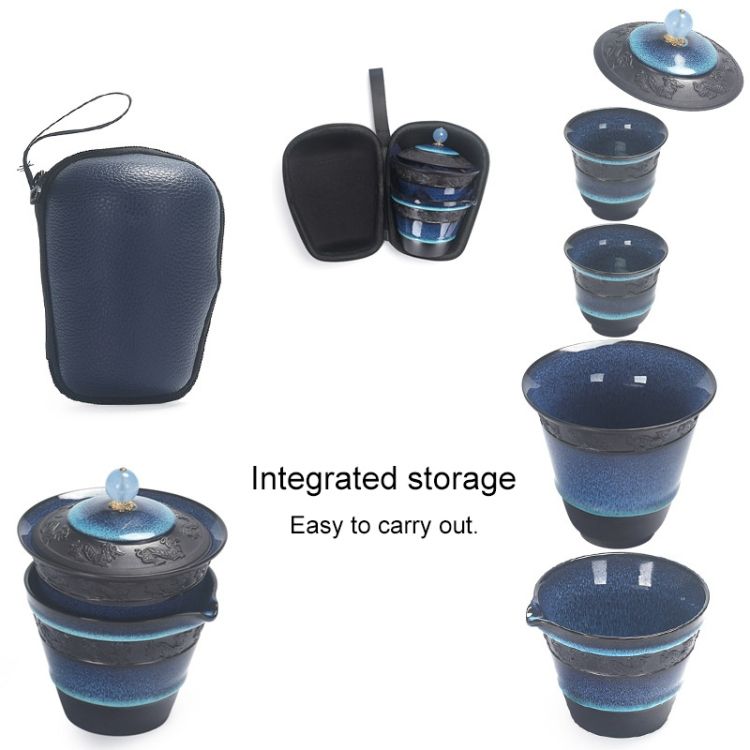 6 in 1 Temmoku Portable Travel Kung Fu Teaware Tea Cup Set