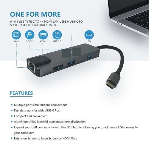 Buy 6 in 1 Type-c 2 Port Usb 2.0/3.0 Hub Rj45 Usb Lan Card Reader Converter in Nigeria