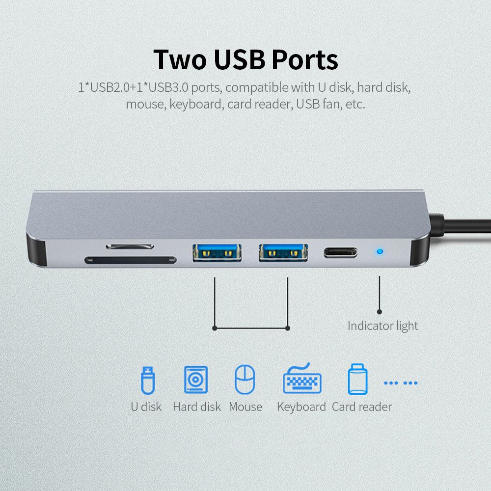 【Multiple ports】6 in 1 Type-C Hub,compatible with U disk, hard disk, mouse, keyboard, card reader, USB fan, etc;equipped with SD and TF card slots, easy to read your memory card data.(Reading TF and SD cards simultaneously is not supported)