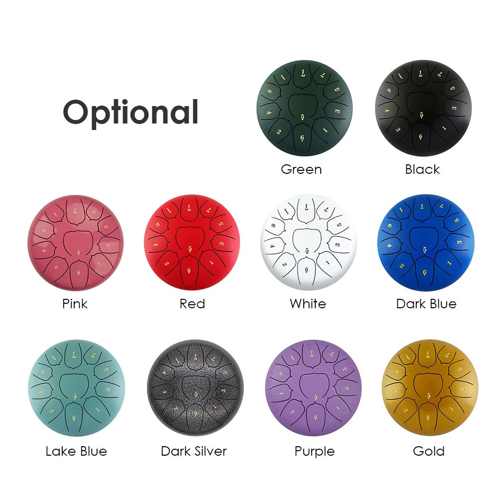 1 x Steel Tongue Drum 2 x Drum Mallet 4 x Finger Picks 1 x Note Sticker 1 x Music Book 1 x Cleaning Cloth 1 x Drum Bag