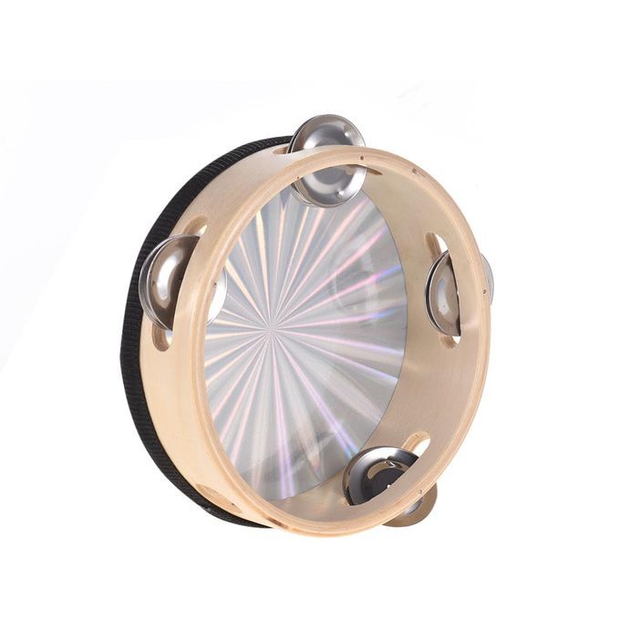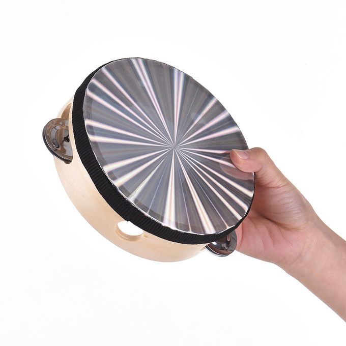 Handheld wooden tambourine, lightweight and portable, easy to carry around.