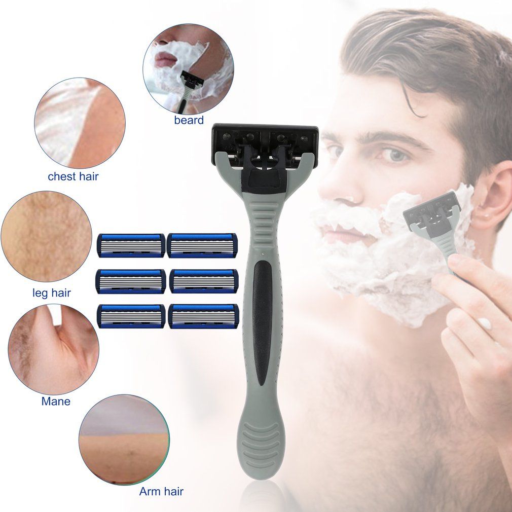 1X 6 Layers 1 Holder + 7 Blades Replacement Head Cassette Shaving Set Blue Face For Man