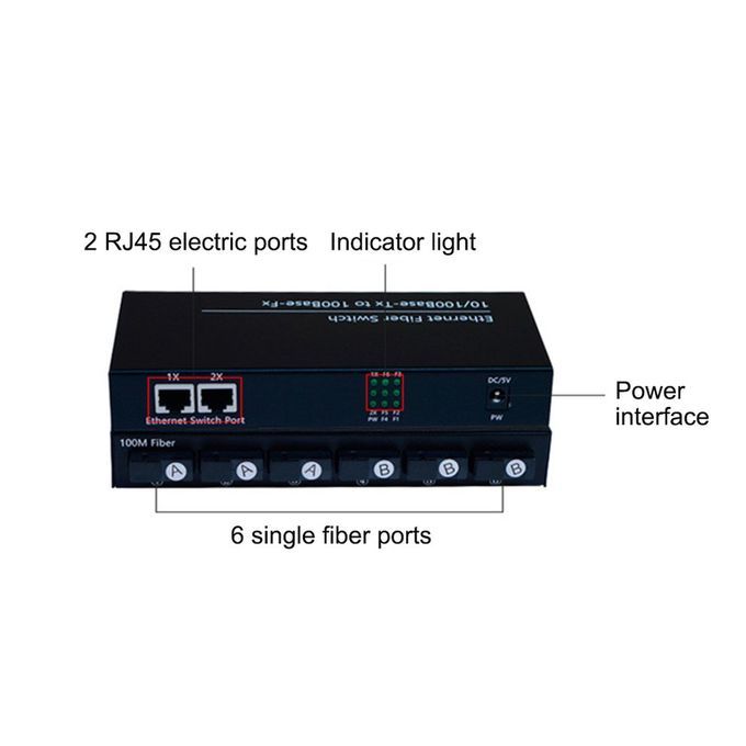 1x 6-Opti al 2-Ele tri 100-Mega Single-mode Single-Fiber Trans eiver