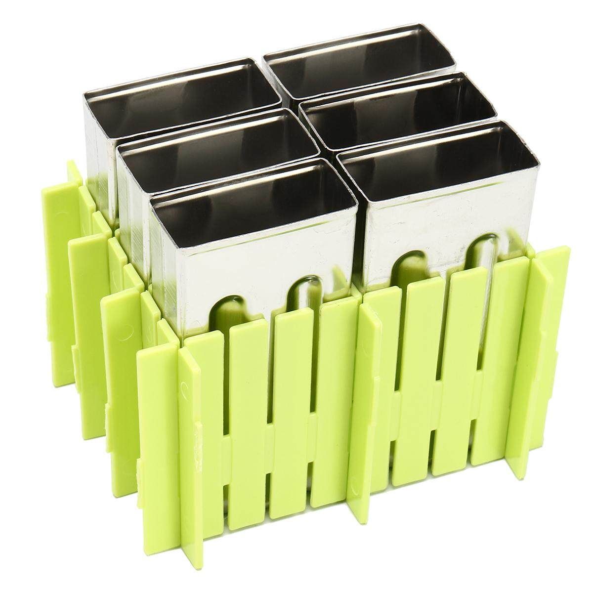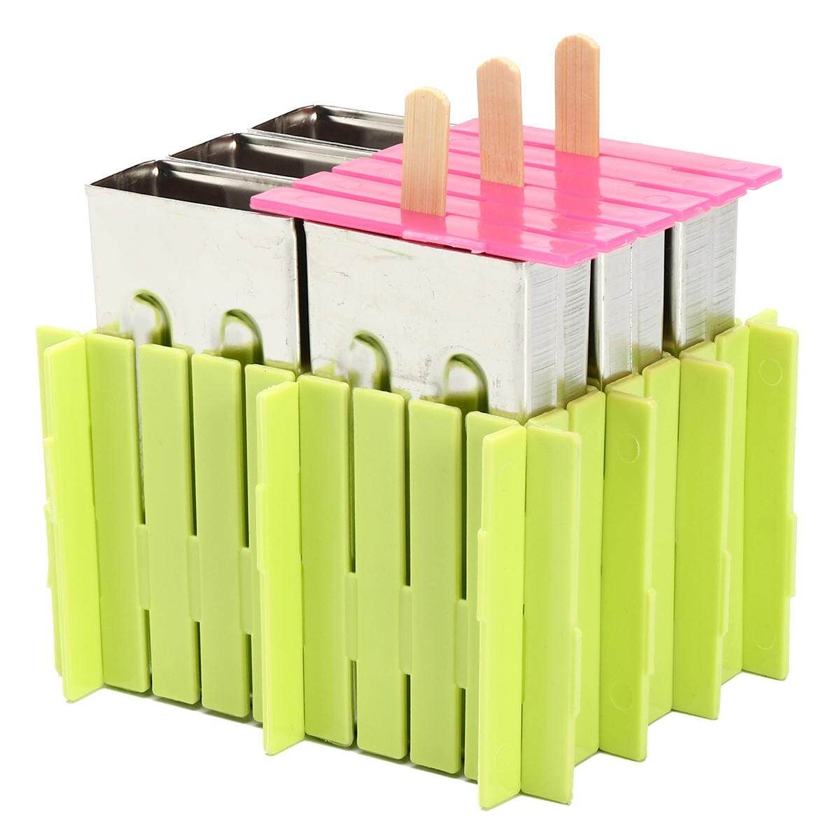 6pcs Stainless Steel Molds Ice Lolly Popsicle Ice Stick Holder Mould DIY Description: 100% Type:Ice Stick Mold Material:304 Stainless Steel+Plastic :Silver+Green+Pink Mold Cup:6Pcs (1cm=10mm=0.39inch) Measurement Details in the attached picture. Package: 1x Ice Stick Mold 1X Cleaning brush 20X Bags 50XWood sticks Features: Made of high quality stainless steel which thickness is 0.8mm, safe to use. It can make 6pieces Ice Pops. Designed so that one ice can be removed (or re-filled) at a time Simply hold the mold in your hand for a moment, or run under warm water briefly, release quickly. Fast freeze mold is easy to use, easy to clean, and will last you a life time. There are multiple choices for you. You can choose different molds in our store. Tips: Please do not put too much into the mold to avoid spilling. If it's too hard to pull out, place the mold upside down and flush with water. Note: 1.The real of the item may be slightly different from the pictures on website caused by many factors such as brightness of your and light brightness. 2.Please allow slight deviation for the measurement data. 3.Please allow 0.1-0.5cm error due to the hand measurement. Ifyouhaveanyquestions,pleasecontactus. Wishyouhaveahappyshoppingtime!