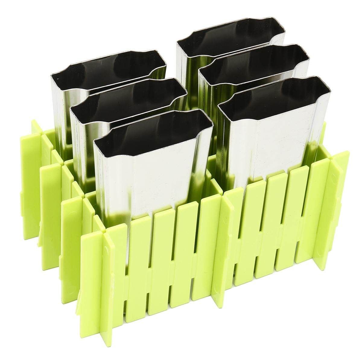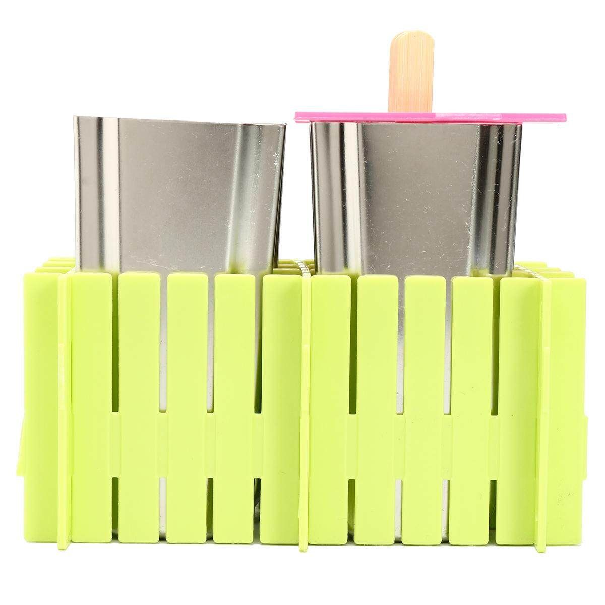 6pcs Stainless Steel Molds Ice Lolly Popsicle Ice Stick Holder Mould DIY Description: 100% Type:Ice Stick Mold Material:304 Stainless Steel+Plastic :Silver+Green+Pink Mold Cup:6Pcs (1cm=10mm=0.39inch) Measurement Details in the attached picture. Package: 1x Ice Stick Mold 1X Cleaning brush 20X Bags 50XWood sticks Features: Made of high quality stainless steel which thickness is 0.8mm, safe to use. It can make 6pieces Ice Pops. Designed so that one ice can be removed (or re-filled) at a time Simply hold the mold in your hand for a moment, or run under warm water briefly, release quickly. Fast freeze mold is easy to use, easy to clean, and will last you a life time. There are multiple choices for you. You can choose different molds in our store. Tips: Please do not put too much into the mold to avoid spilling. If it's too hard to pull out, place the mold upside down and flush with water. Note: 1.The real of the item may be slightly different from the pictures on website caused by many factors such as brightness of your and light brightness. 2.Please allow slight deviation for the measurement data. 3.Please allow 0.1-0.5cm error due to the hand measurement. Ifyouhaveanyquestions,pleasecontactus. Wishyouhaveahappyshoppingtime!