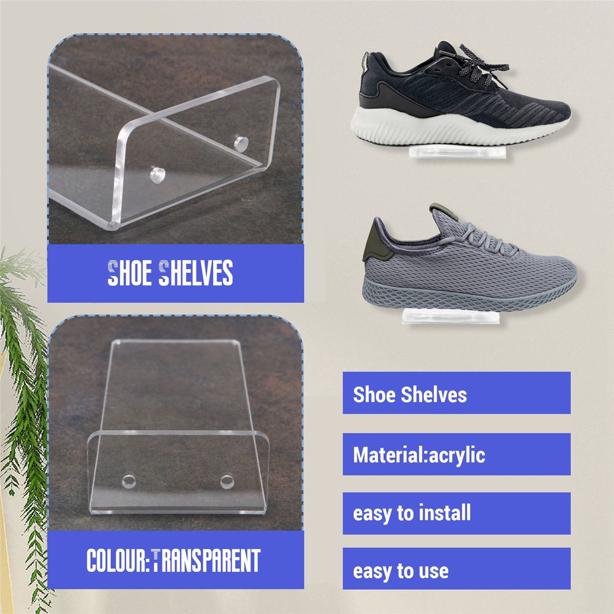 Detailed Information About The Product:[SHOE LOVERS MUST HAVE IT]Whether you're a sneakerhead or a designer devotee, these clear floating shoe shelves will display your cherished shoes on the wall. And can decorate the walls of the home and display shoes, so shoe lovers are all like it.
