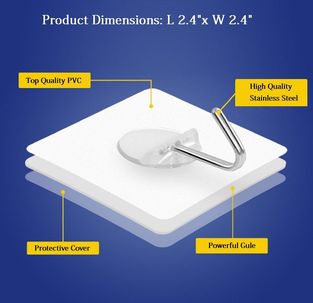 ★SUPER POWERFUL ON MARKET - Up to 13.2lb per hook on wall & ceiling, No nail needed.Size: 63mm(L) * 63mm(W).