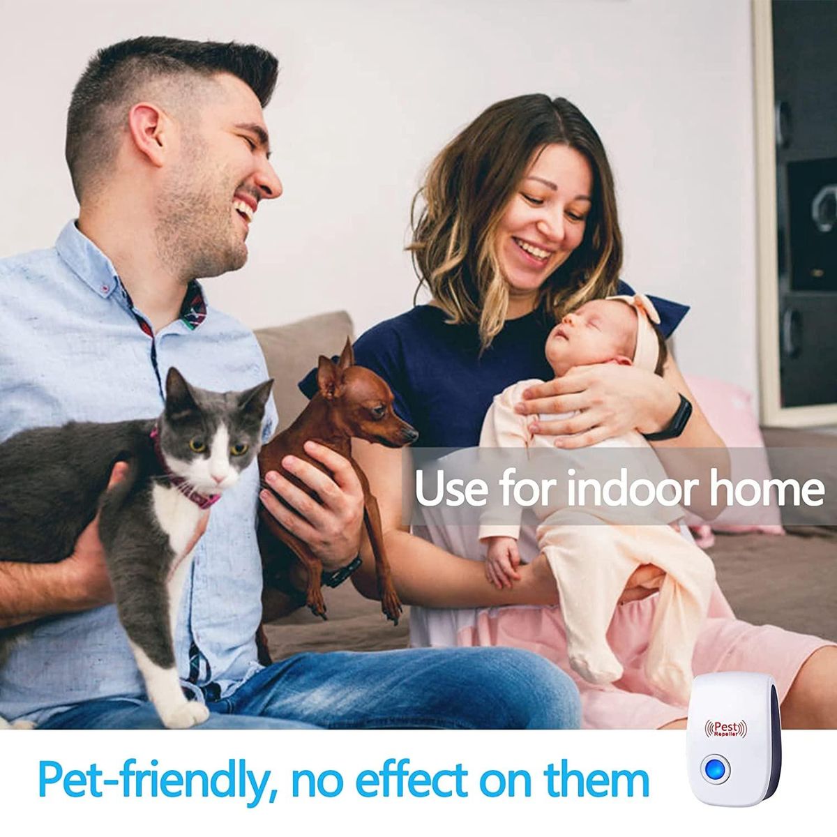 The ultrasonic pest repeller emits low frequency sound, designed to repel indoor household pests and work without noise or smell, human and pet friendly