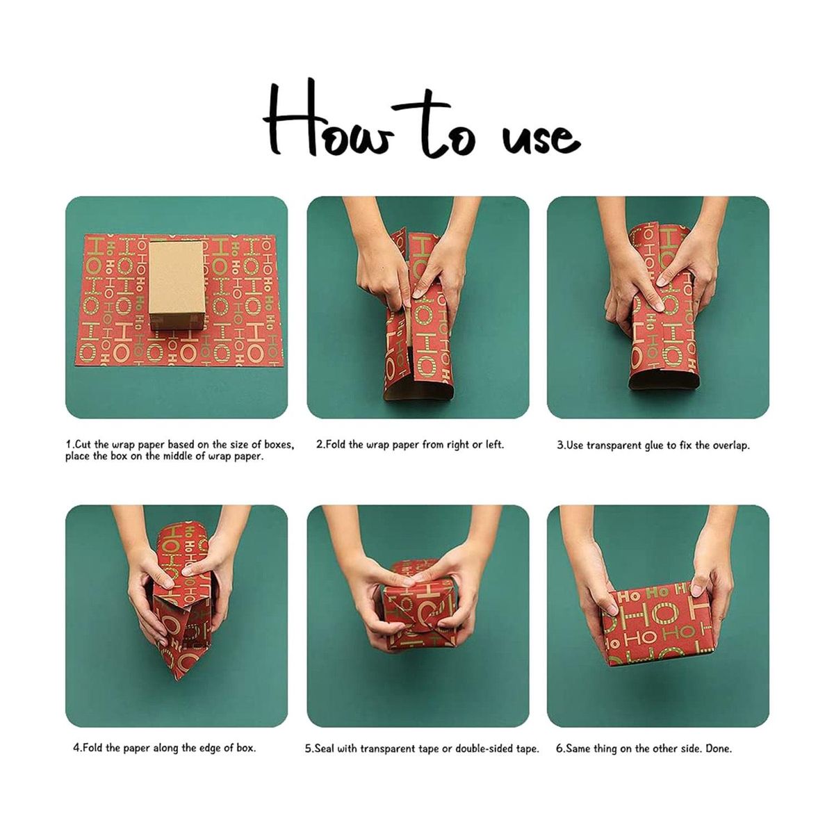 There are 6 sheets of Christmas wrapping paper in total. Each pack has been folden well in the package, please gently open the package when you received the parcel. Please use scissors carefully to cut the packet.