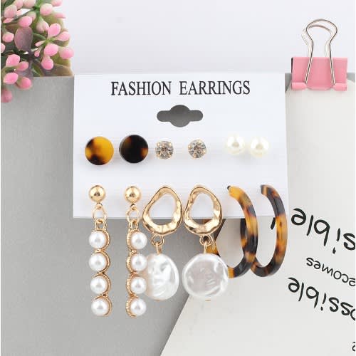 Buy 6 Pair Combo Of Crystal Pearl Gold Plated Stud in Nigeria