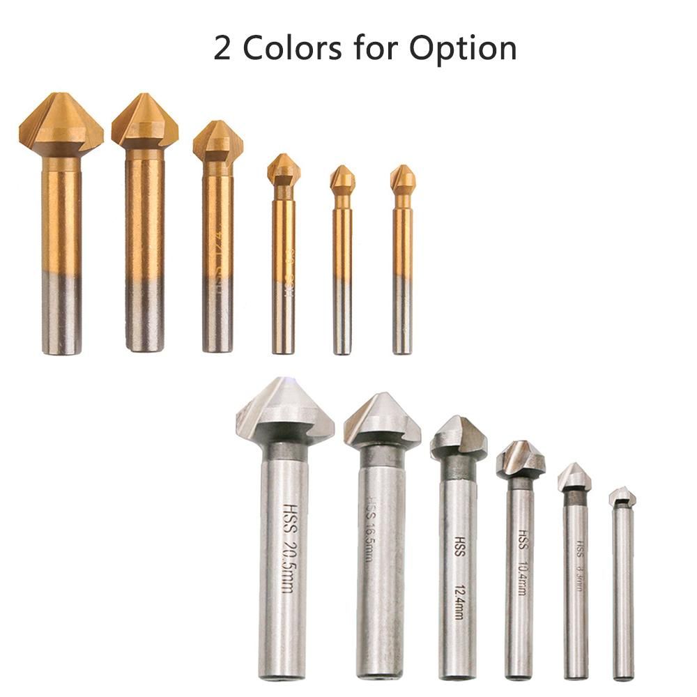 Buy 6 Pcs 90 Degree 3 Flute Titanium Coating Chamfering Cutter Drill Bits Chamfer Countersink Bits Set for Sink Holes Stainless Steel Copper Metals Gold in Nigeria
