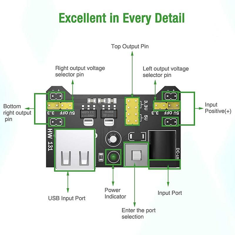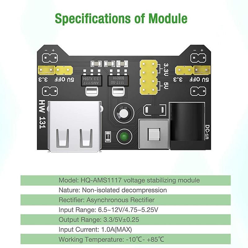 Detailed Information About The Product:High performance: HQ - AMS1117 voltage stabilization module, using AMS1117 as the core chip and the module can output A stable 3.3V and 5V voltage at the same time. Professional chip set provides superior performance.