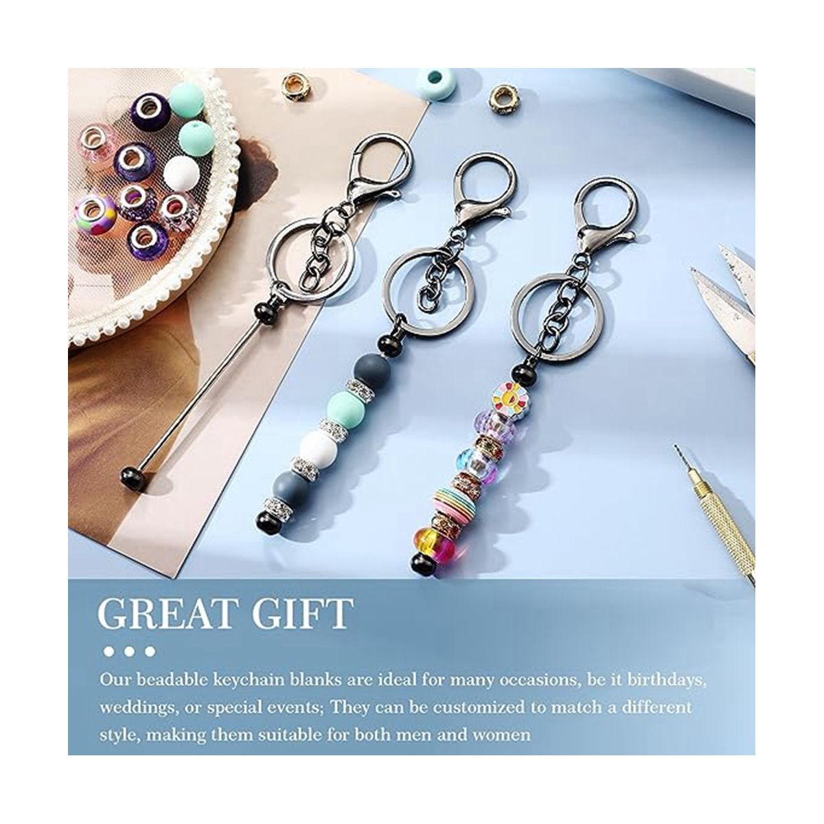 Suitable for various occasions or individuals: Our beaded keychain blanks are perfect for various occasions, whether it's birthdays, weddings, or special events; They can be customized to match different styles, making them suitable for both men and women