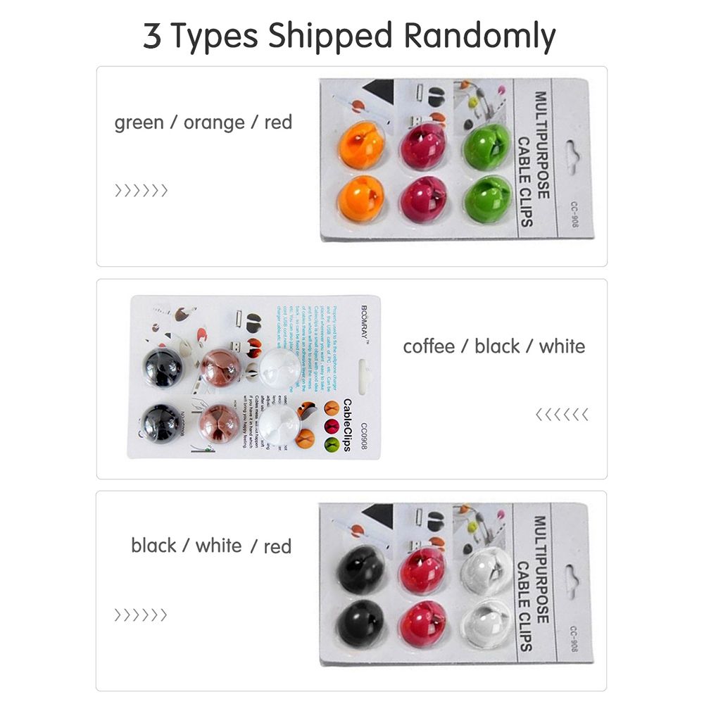 The Color of Cable Holder: One packet of green/orange/red; one packet of coffee / black/white; 2 packets shipped randomly. Material: plastic, the package includes 6pcs desk cable clip.