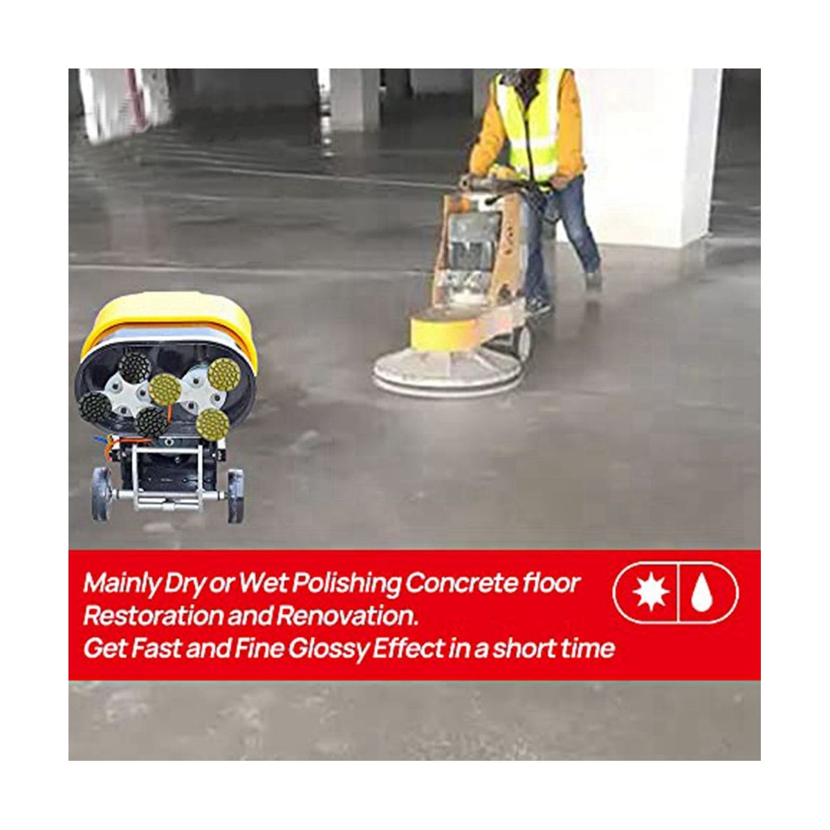 Suitable for processing, repairing, and renovating concrete floors, cement floors, and terrazzo floors