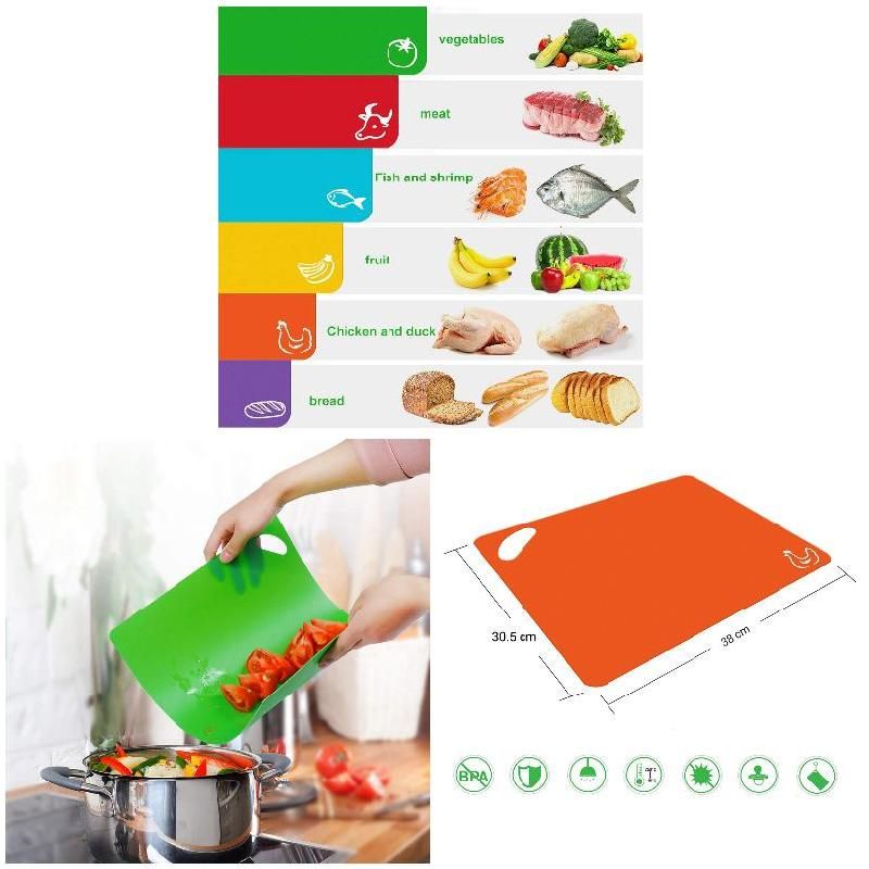 SET OF 6 COLORS. You can cut specific foods by different cutting board and food icons can help you identify the mats,which can prevent food cross contamination.