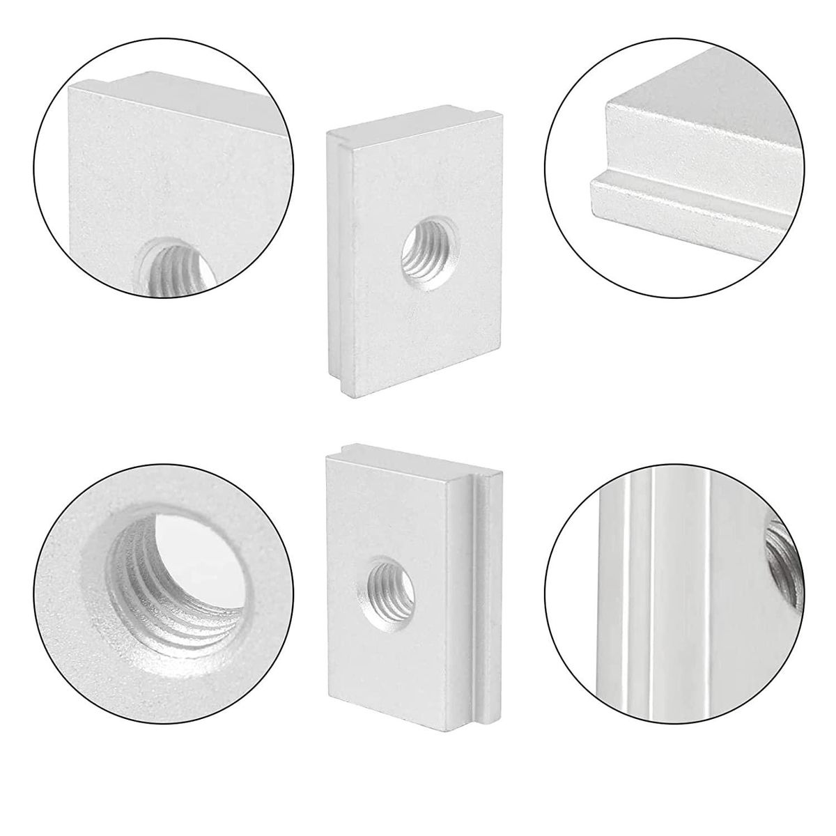 Standard size: The size of the T- nut block is 3 x 2.3 x 0.8cm, and the model is M6. Comes with 6 pieces M6 T- nut, sufficient quantities can meet your different needs. Colour: silver gray