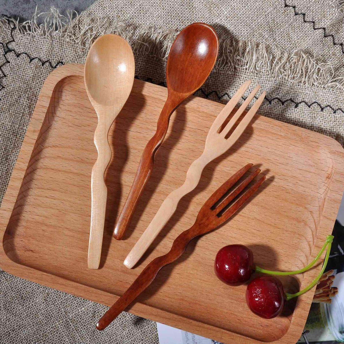 Wood kitchen tools are safe to use on cups, dishes, and bowls and will not scratch surfaces.