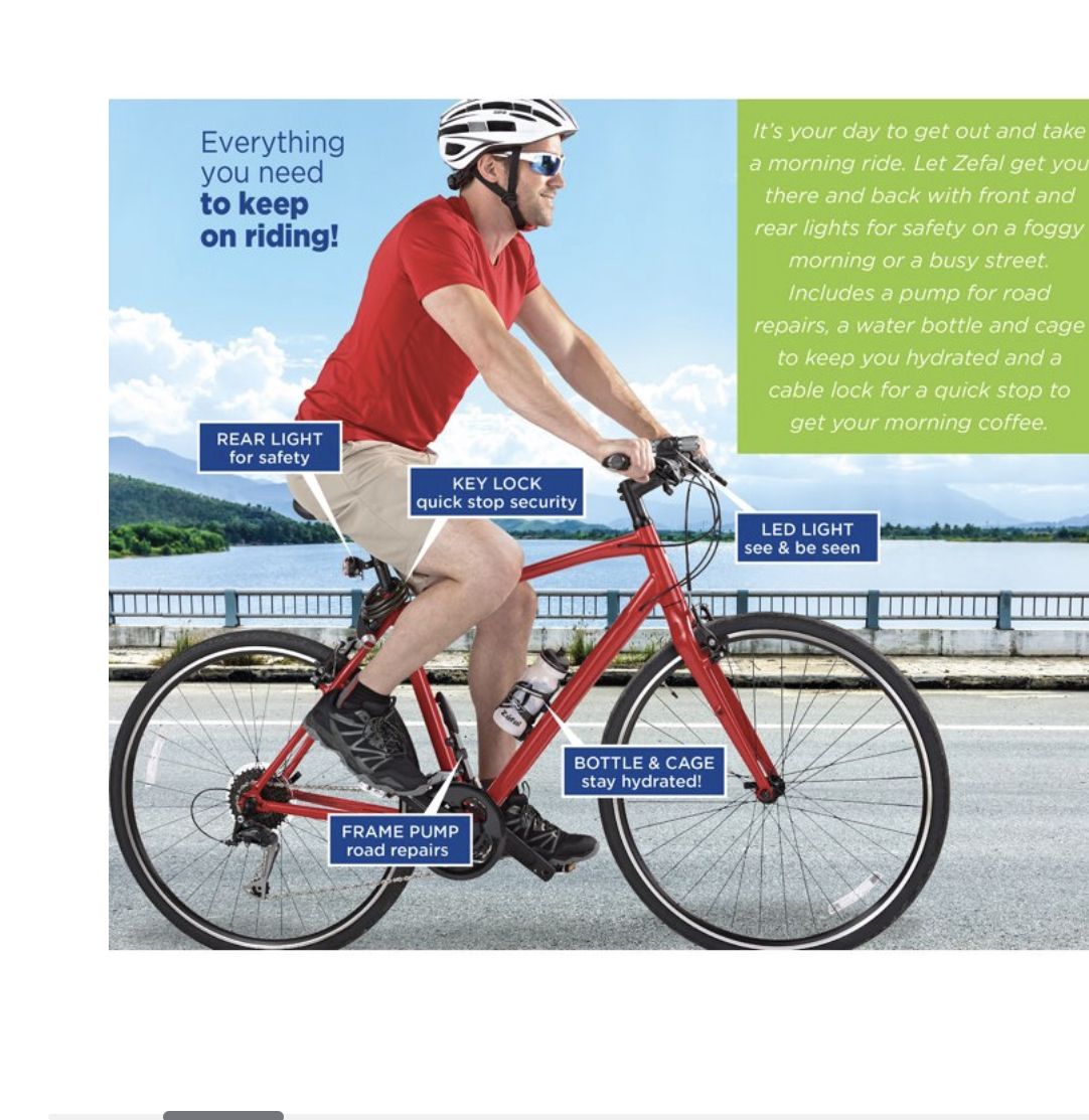 Zefal 6-Piece Bike Accessories Starter Pack - Includes six essential items to help you get your bicycle ready for the road. The kit includes a mini hand pump with folding T-handle that allows you keep your tires properly inflated. The convenient frame mounted bracket holds the pump so you can bring the pump along with you. Also included is a front and rear LED light set. Both lights have multiple modes (constant and flashing) to help you be seen when out on the road. The wide mouth, 20-ounce, water bottle with reinforced plastic water bottle cage allows you to carry your water and stay hydrated during your ride. Lastly, the kit includes a five-foot long, self-coiling keyed cable lock so you can lock up your bike while you step away.