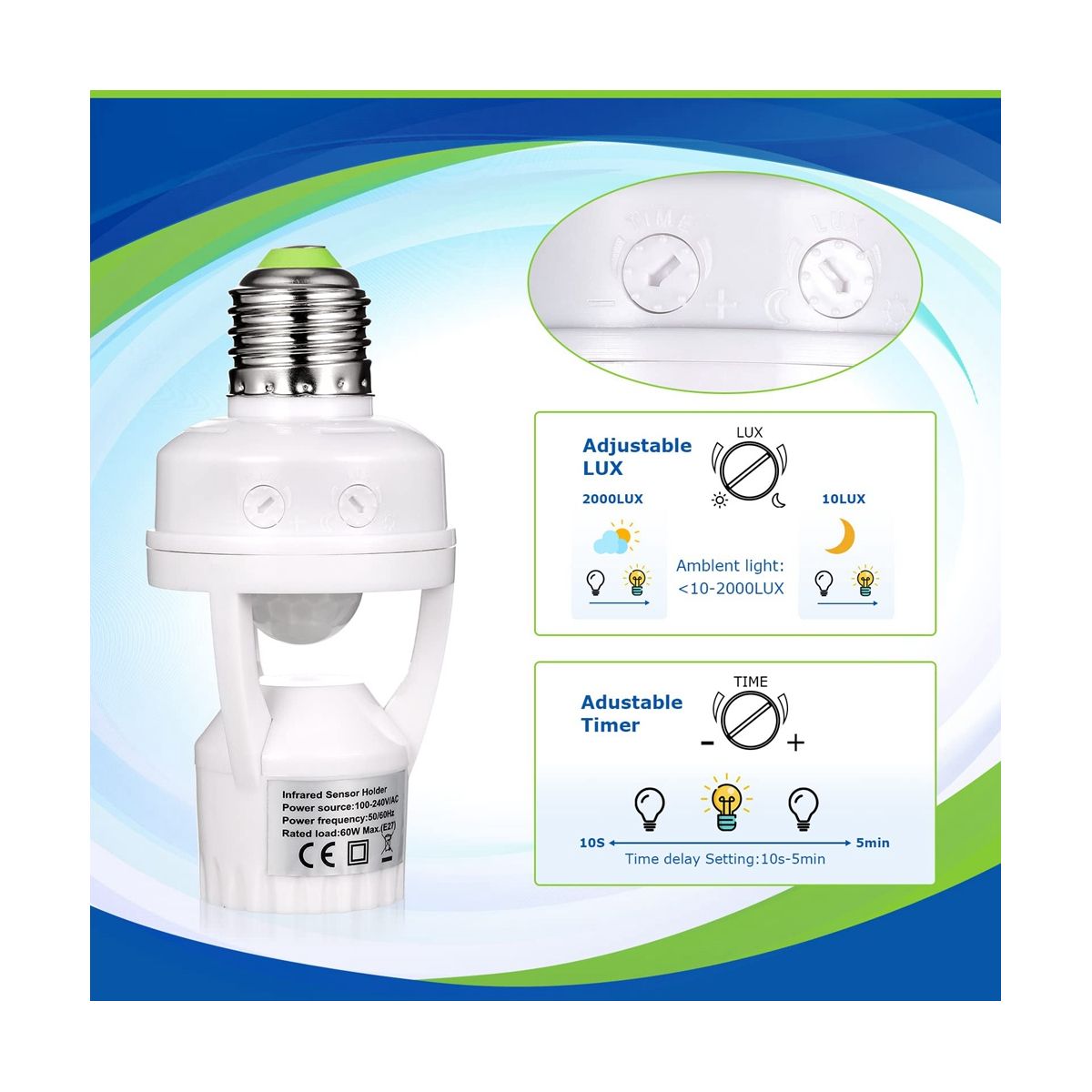 This motion sensor light socket is suitable for all E27 screw-in lighting it can convert your ordinary light s into infrared sensor lights