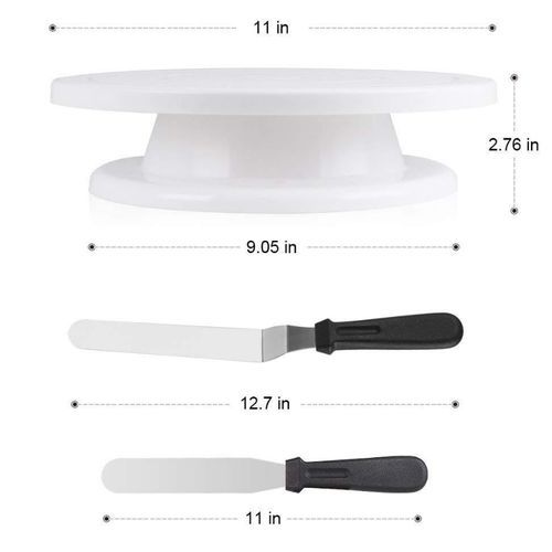 - INCLUDED ACCESSORIES TO COMPLETE YOUR DECORATING SKILLS - Frost your cakes with butter cream, fondant, marzipan, or royal icing and with the included set of 3x decorating combs and 2x heavy duty food grade spatulas, you will have a lot of fun smoothing and decorate the custom icing and creams.
