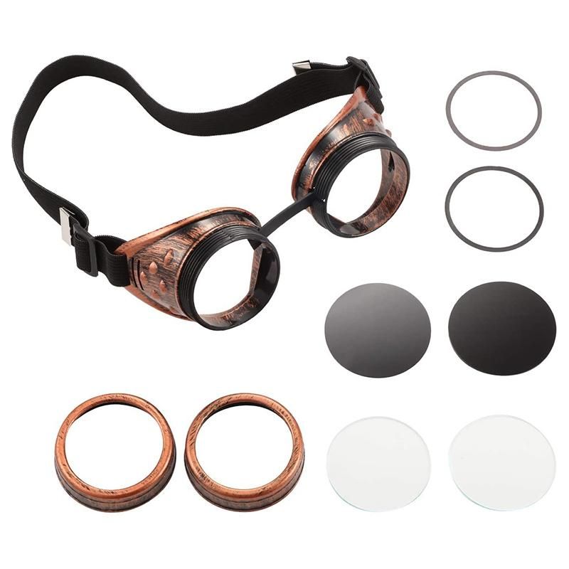 6 Pieces Goggles Welding Sunglasses for CosplayVersatile size: this vintage steampunk goggles glasses has the advantage of fitting different head size with adjustable elastic band, which also helps the goggles stay in place for lasting protection.