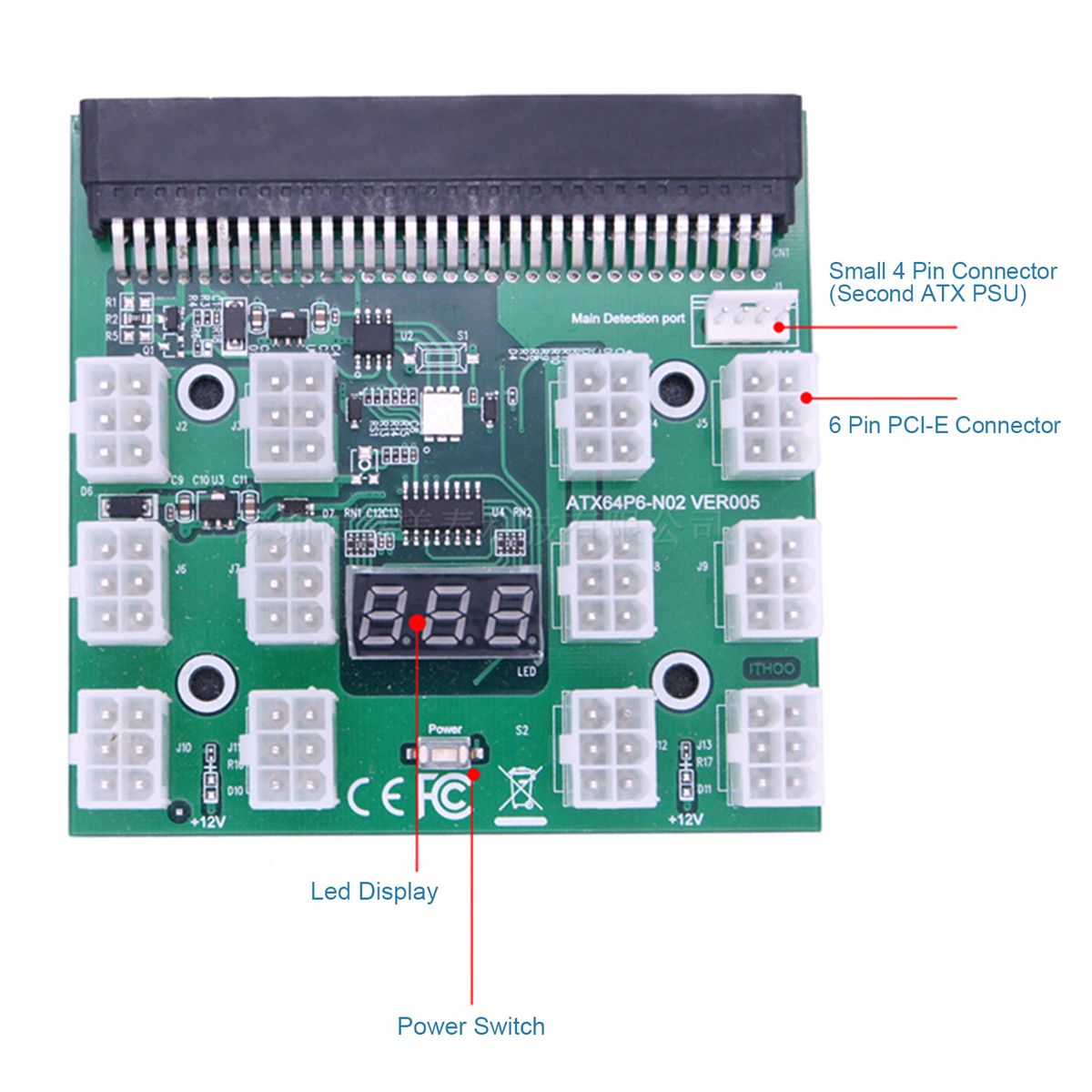 6 groups of graphics cards with 8pin output, dual solid capacitor filtering, suitable for a variety of server power-supplies.