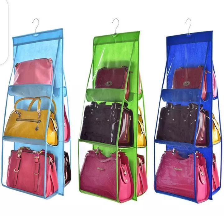 Features:- This hanging handbag organizer can hold 6 bags.