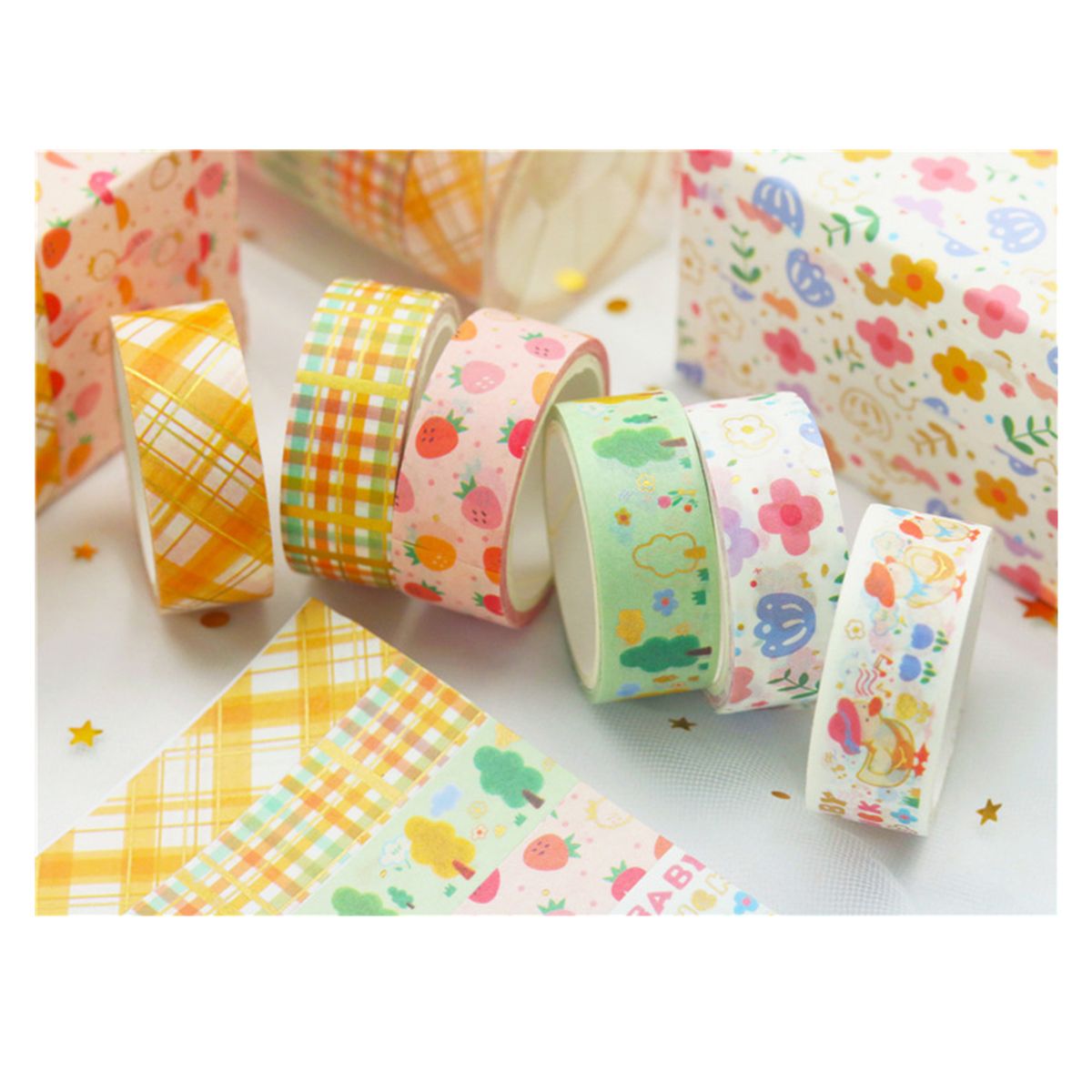 Package includes 6 rolls washi tapes, each roll is 5 meters/16.4ft long, 15mm/0.59in wide.