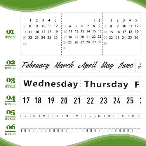 The following is the detailed introduction about our products: Package includes: 1 roll 5 mm squares pattern tape, 1 roll 5 mm letter pattern tape, 1 roll 10 mm number tape, 1 roll 15 mm week tape, 1 roll 15 mm month tape, 1 roll 30 mm specific date pattern tape, the length of each roll of tape is 10 meters, They are enough for your use.