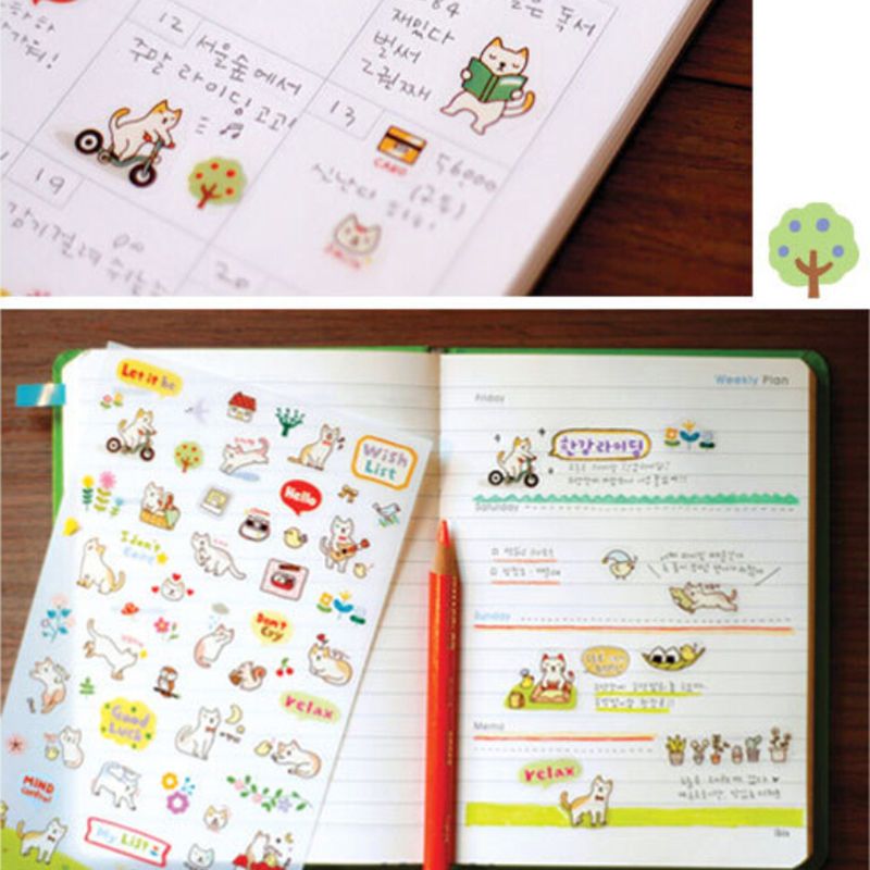 1 * 6 Sheets New Cartoon Kawaii Paper Scrapbooking Cat Stickers