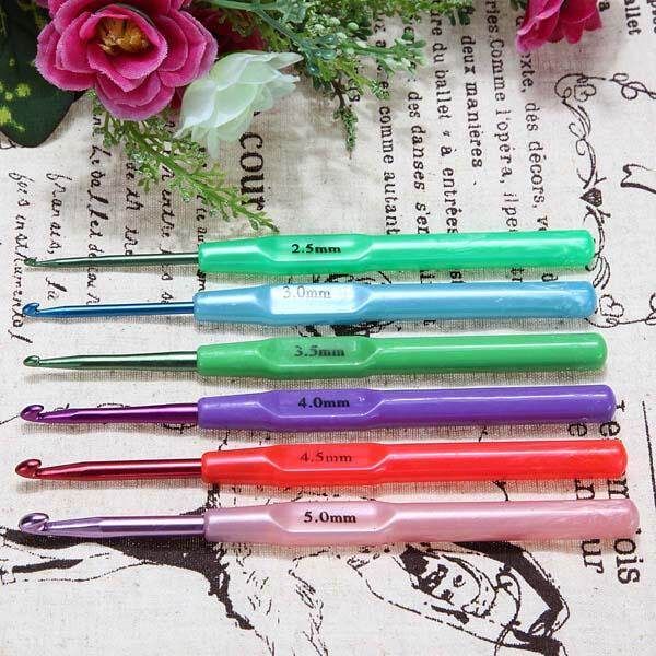 1X 6 Sizes Aluminum Plastic Handle Crochet Hooks Knitting Yarn Needles Set 2.5-5mm