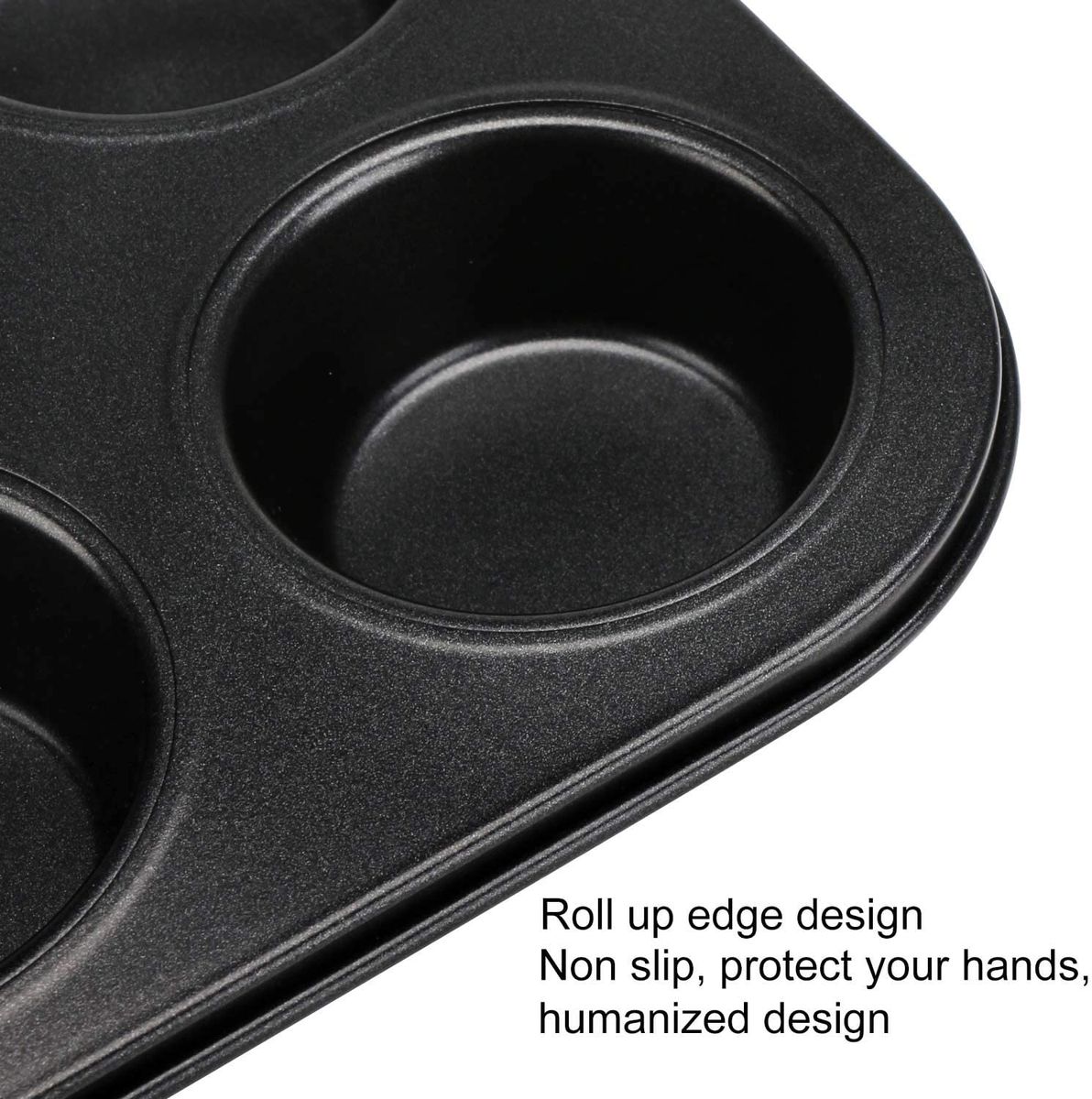Seamless The muffin pan was made integrally, with no welding gaps and spot, roll up edge design can also protect your hands.