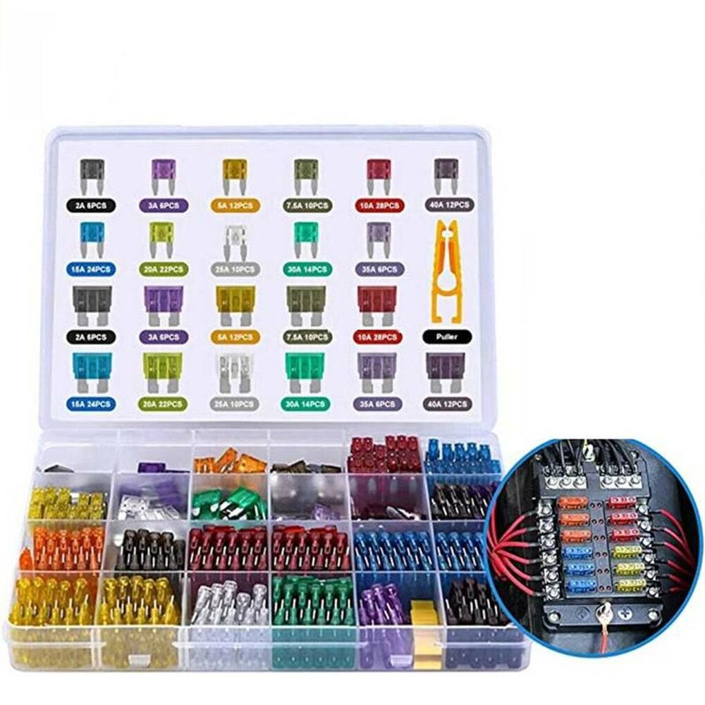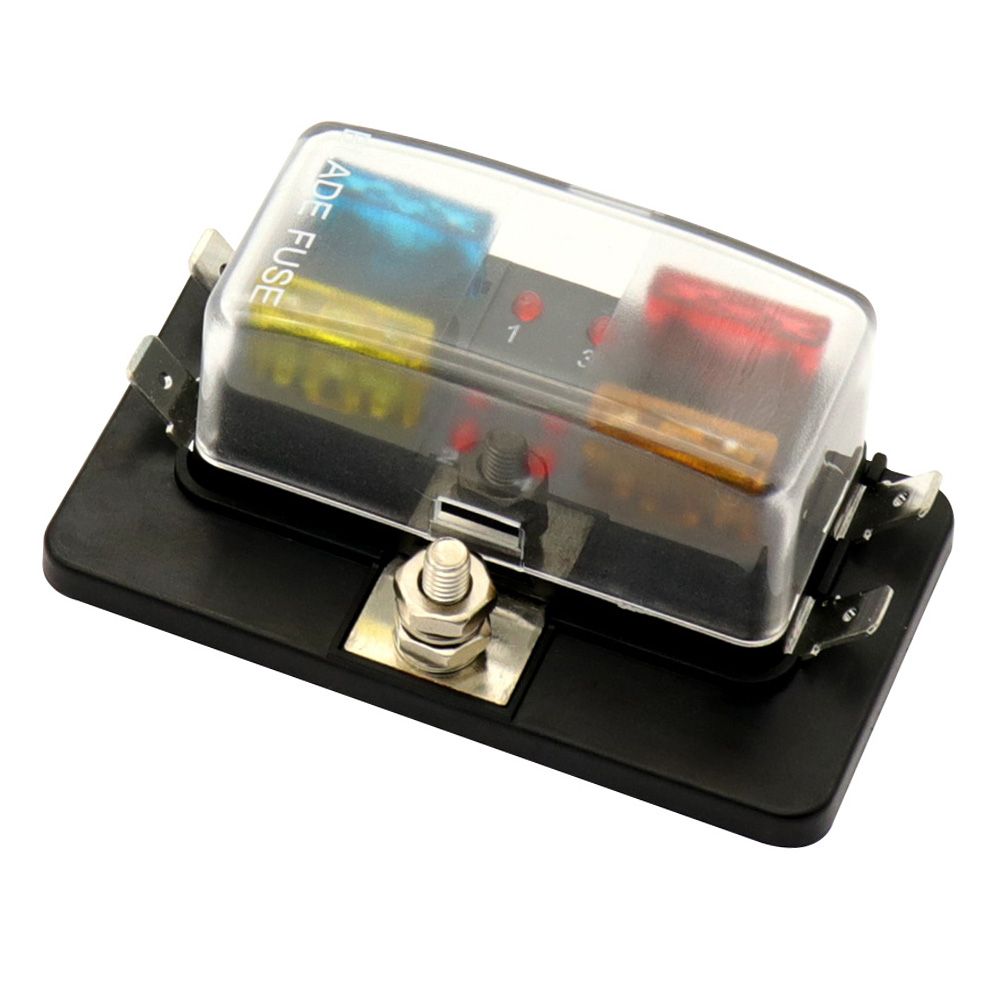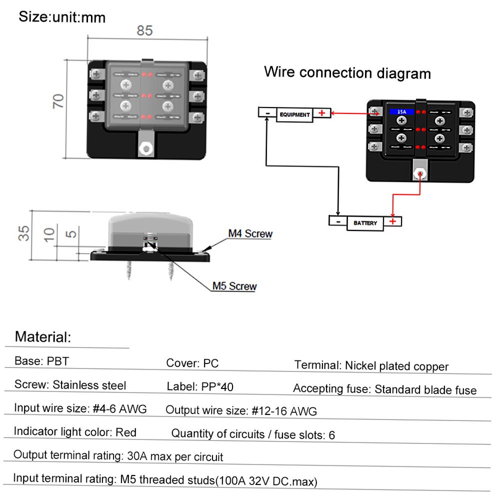 6 way fuse box holder with 10A(red), 15A(blue), 20A(yellow), 25A(white), 30A(green) fuses.