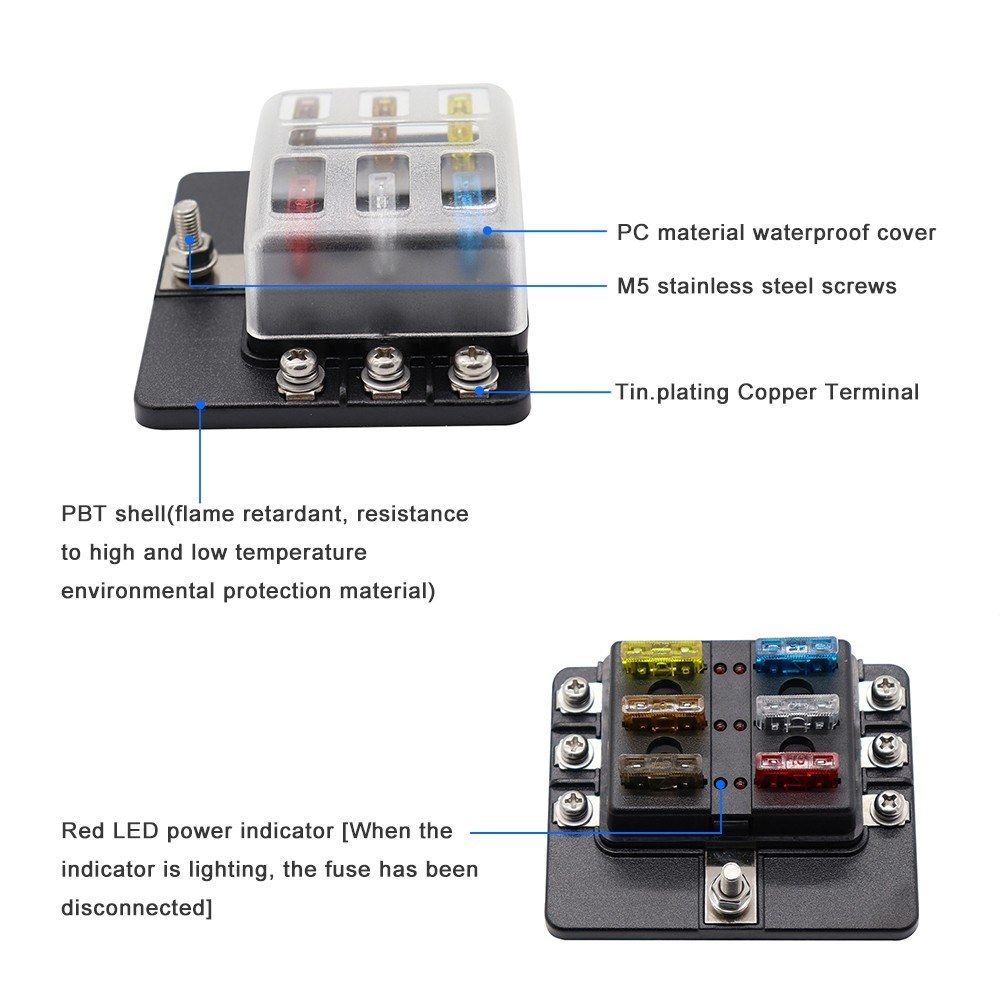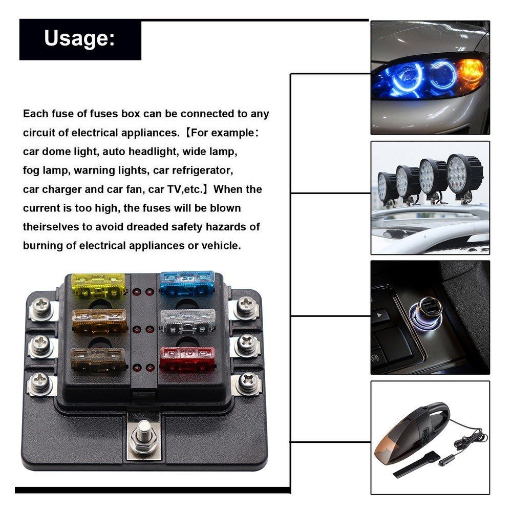 This fuse box is suitable for all kinds of automotive and marine applications, including 6v, 12v amp; 24v systems (maximum voltage 32v).