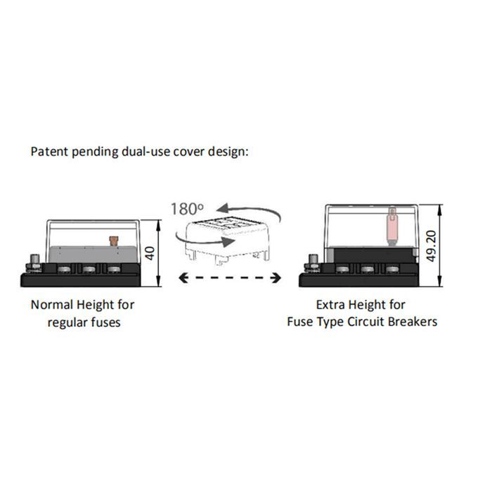180 degree rotating transparent cover design enables you to adjust the height of the upper cover of the fuse box according to the size of the fuses you need.