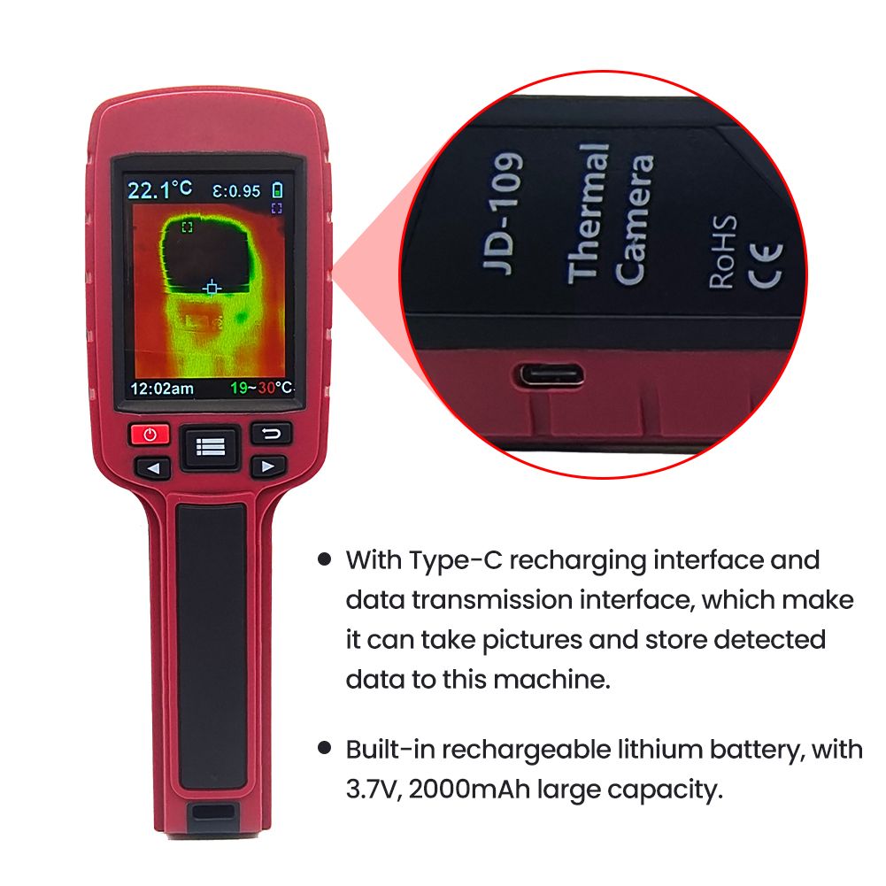 With Type-C recharging interface and data transmission interface, which make it can take pictures and store detected data to the computer.