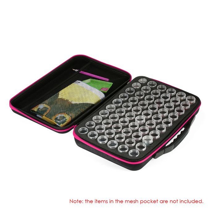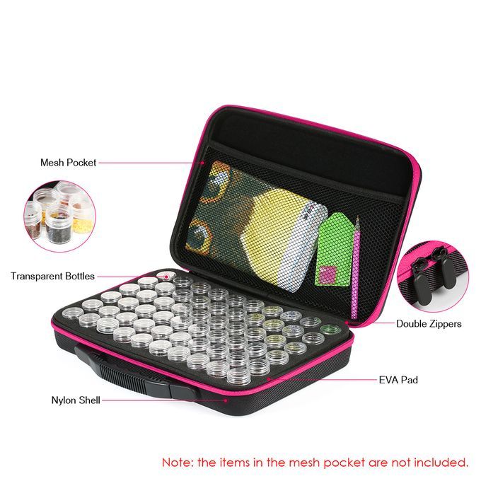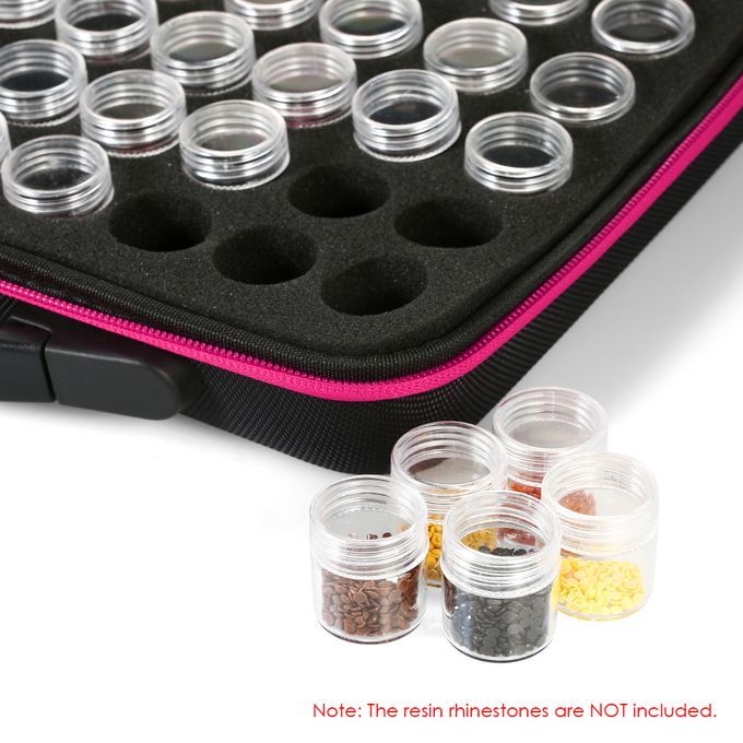 Diamond painting storage case, which has multiple individual transparent bottles inside, is a great tool for store your embroidery rhinestones.