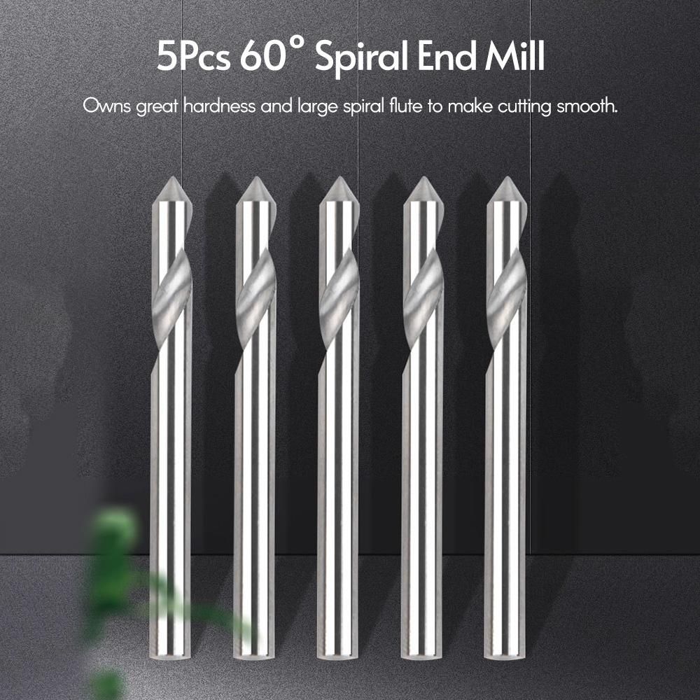 Buy 60 Degree Spiral Engraving End Mill Router Bit V-Groove Carving Cutter 3D Engraving Bit with Flat Bottom 1/8 in Shank, 5 Pcs in Nigeria