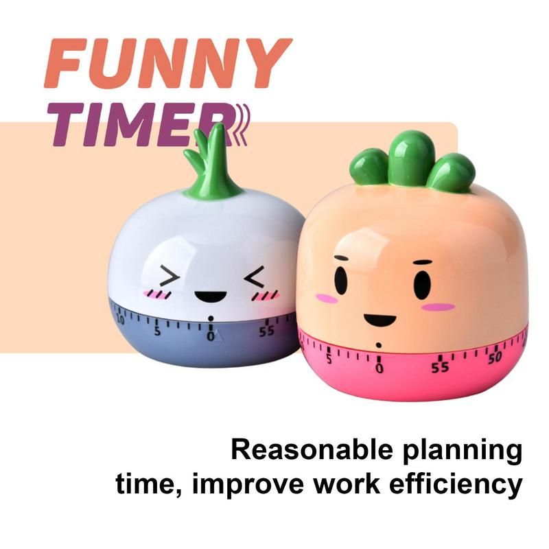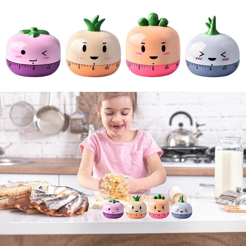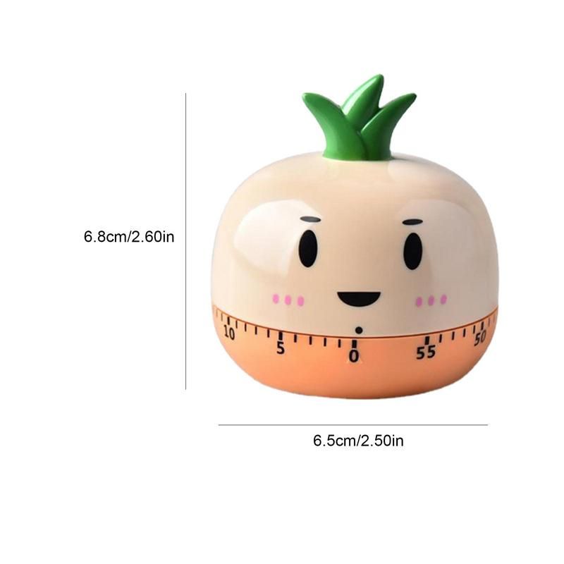 Bullet Points: 1、Durable Material: This kitchen manual timer is made of high-quality and durable ABS material, which is drop-proof and not easy to be damaged ar long-term use. 2、Lovely Shape: The appearance of the mechanical timer is very cute, with tomato, pine, radish, and other cartoon shapes, which is very suitable for children. 3、Easy to Use: This cartoon timer has a manual and mechanical design that does not require batteries, making it quick and easy to operate even for children. 4、Wide Range of Application: The cute baking timer can be placed in the kitchen to control the cooking time of frying, poaching es, pancakes, baking, cakes, etc. 5、Housewarming Gift: This is a cute and practical kids timer, a must-have tool for the family kitchen, and a perfect housewarming gift for friends, colleagues, and family. Features. 1. This kitchen mechanical timer is made of high-quality ABS material, odorle, durable, and long-lasting. 2. Different cartoon shapes, smooth to the touch, cute, and charming. 3. Timer length of 55-60 minutes. Mechanical movement, no need to add, or replace the battery. 4. Ideal time reminder for kitchen baking, frying, cooking es, cookies, and cakes. 5. Suitable as a Christmas gift for children to improve learning efficiency and time management skills. Specifications. Name: kitchen timer Material: ABS Size (length and height). tomato: About 6.5 * 5.3cm / 2.5 * 2in pine: About 6.5 * 6.8cm / 2.5 * 2.6in Radish: About 6.5*7cm/2.5*2.7in Onion: About 6.5*6.7cm/2.5*2.6in Product list. Kitchen timer*1 Notes: 1. Due to the different monitor and light effects, the actual color of the item might be slightly different from the color which is showed in the pictures. 2. Please forgive a slight measuring deviation due to manual measurement.