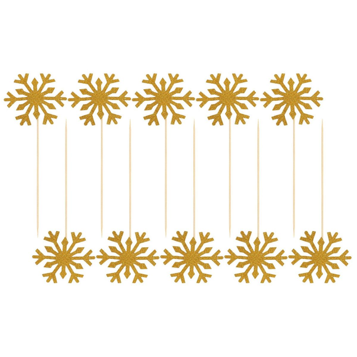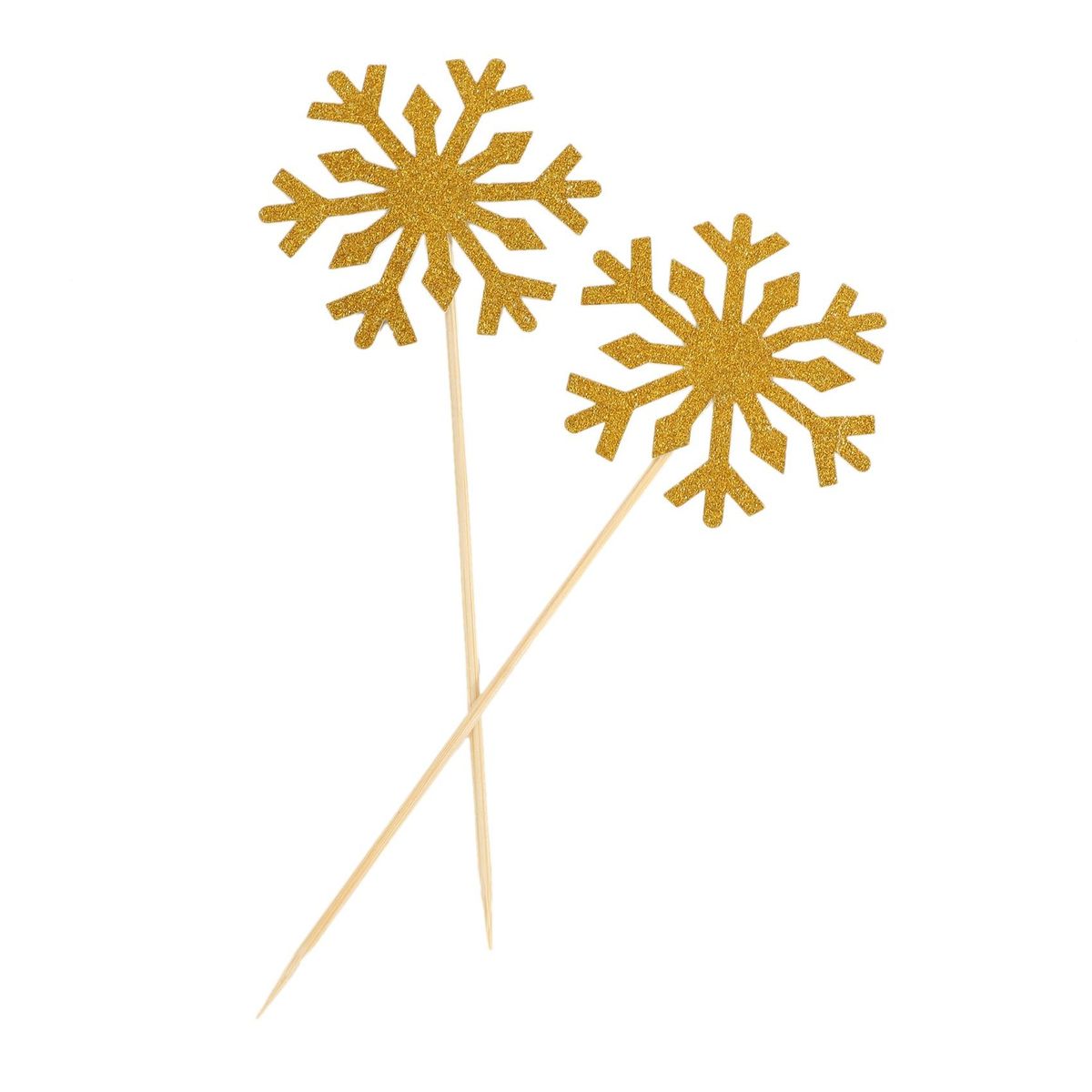 60 Pack Snowflake Cupcake Toppers for PartySnowflake pattern: the snowflake toppers are made up of paper snowflake and wood stick, the snowflakes' one side is glitter silver, the other side is white, beautiful snowflake decorations
