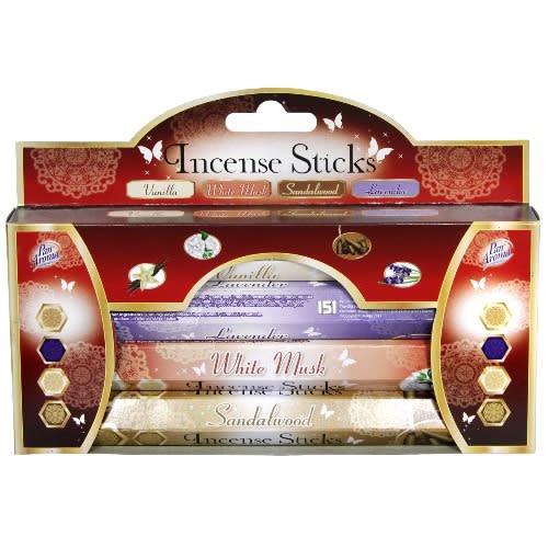 4 packs of assorted incense sticks that slowly burns to keep the house in good aroma, Light the sticks and let it fill your house with wonderful scents.