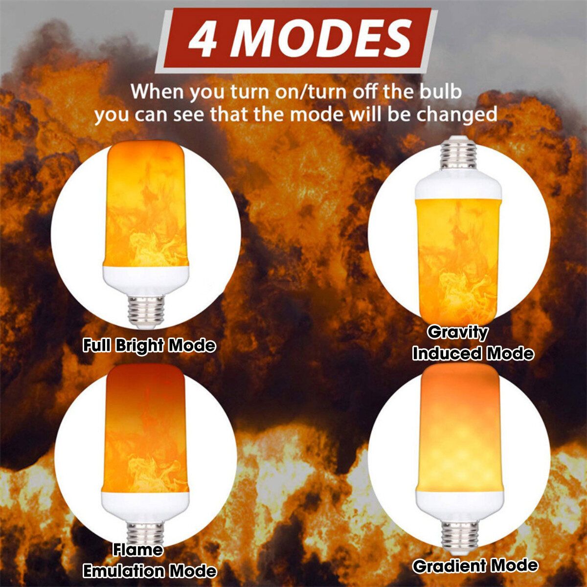 4.Gravity induced mode, the light bulb is turned upside down, and the flashing direction of the lamp beads in the flame mode will also be turned upside down like a real flame.