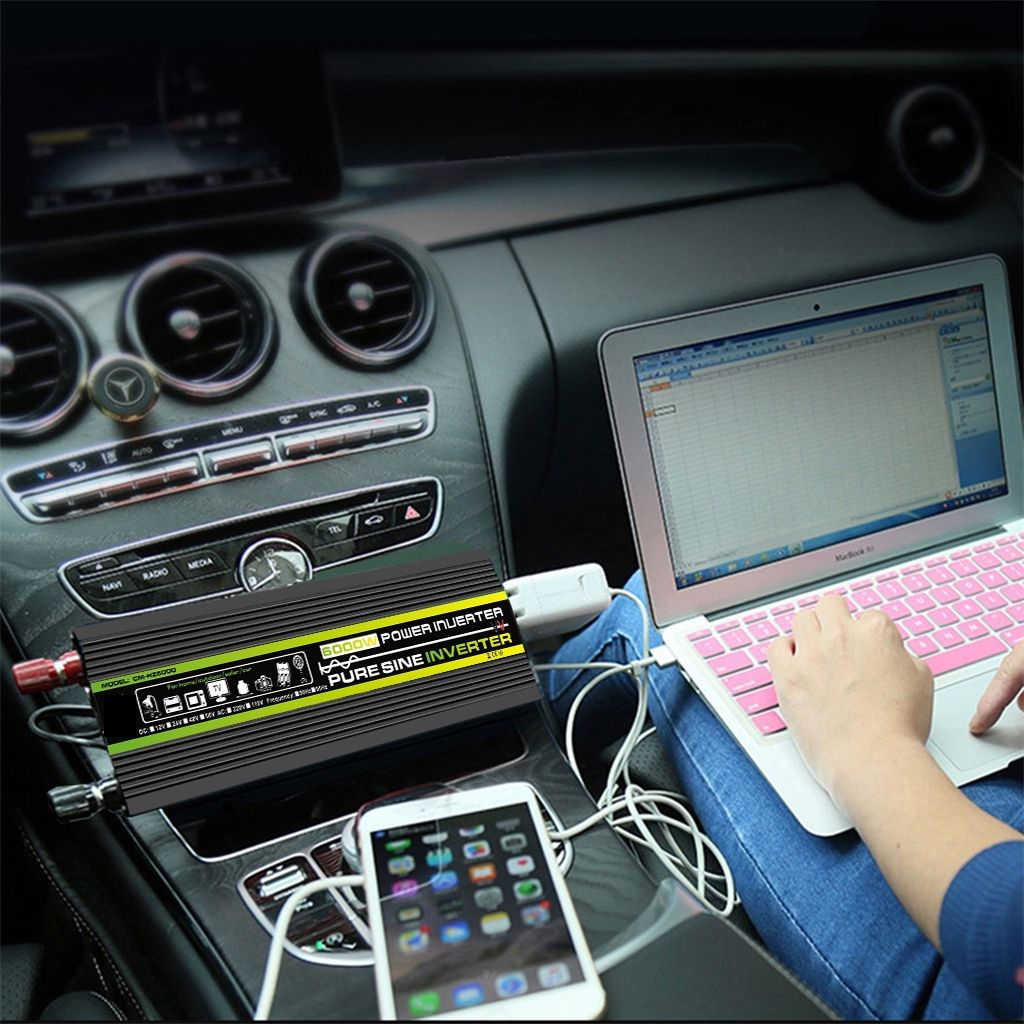 1X 6000W Pure Sine Wave Power Inverter Car Inverter Universal Socket 12V To 220V Power Converter for Car Home Outdoor